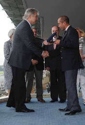 Ö.S.Necmettin Eliyeşil grandchild son of the deceased Şadi Eliyeşil and founding member of the Jockey Club of Turkey, gave a plaque to Mücahit Kaya, the trainer of the horse that won the race. Şerife Karamehmet, grandchild of the deceased Şadi Eliyeşil gave a plaque to jockey Halis Karataş during the cup ceremony in the VIP Lounge.